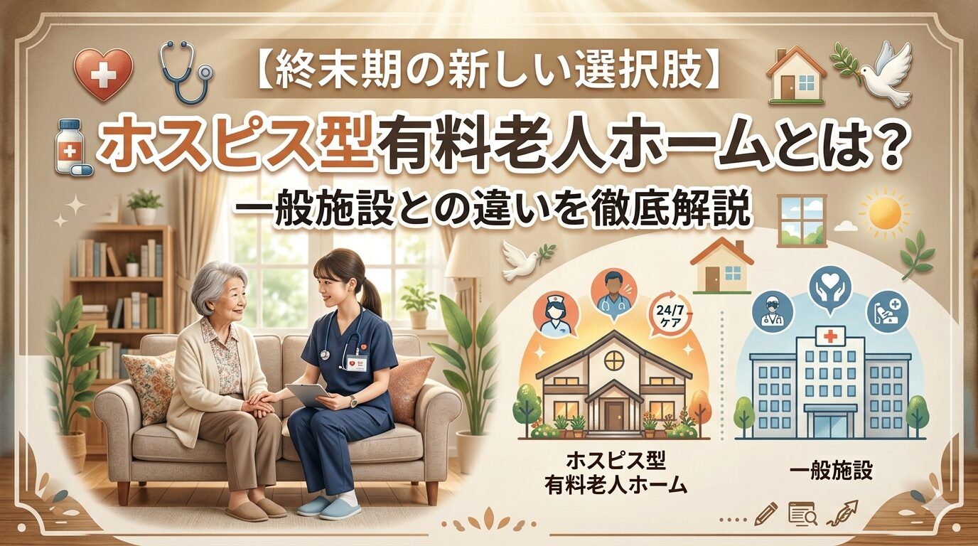 今回は、「ホスピス型有料老人ホーム」が一般的な老人ホームとどう違うのか、メリット・デメリットを交えて分かりやすく解説します。